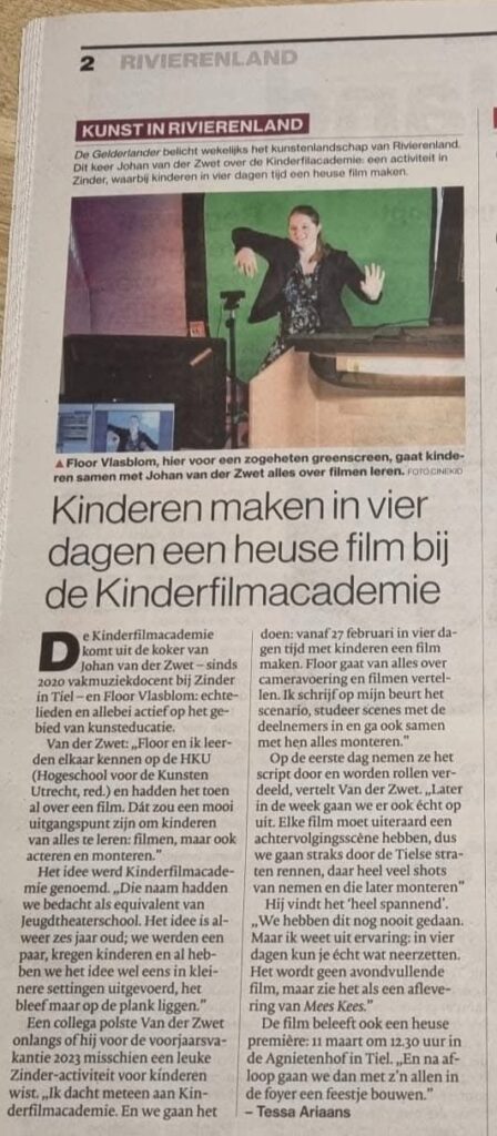 We gaan de slag met 15-18 kinderen. Iedereen komt aan de beurt voor zowel filmen als acteren, als andere dingen zoals de filmklapper.